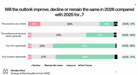 The 2026 Annual Strategy and Marketing Benchmark is always eagerly anticipated by the professional marketing community at Home – PM Forum. The 14th report was presented by Alastair Beddow | LinkedIn (MD of Home – Meridian West). Charlotte Green | LinkedIn (Head of Clients and Markets at Gowling WLG) chaired the subsequent panel discussion with Sarah Zokay-West | LinkedIn (Director of Business Development & Marketing at Harbottle & Lewis solicitors) and Richard Crook | LinkedIn (Marketing and Business Development Director Saffery accountants and tax advisers). 14th Annual Strategy and Marketing Benchmark – Routes to Growth in 2026 strategies (Meridian West research)